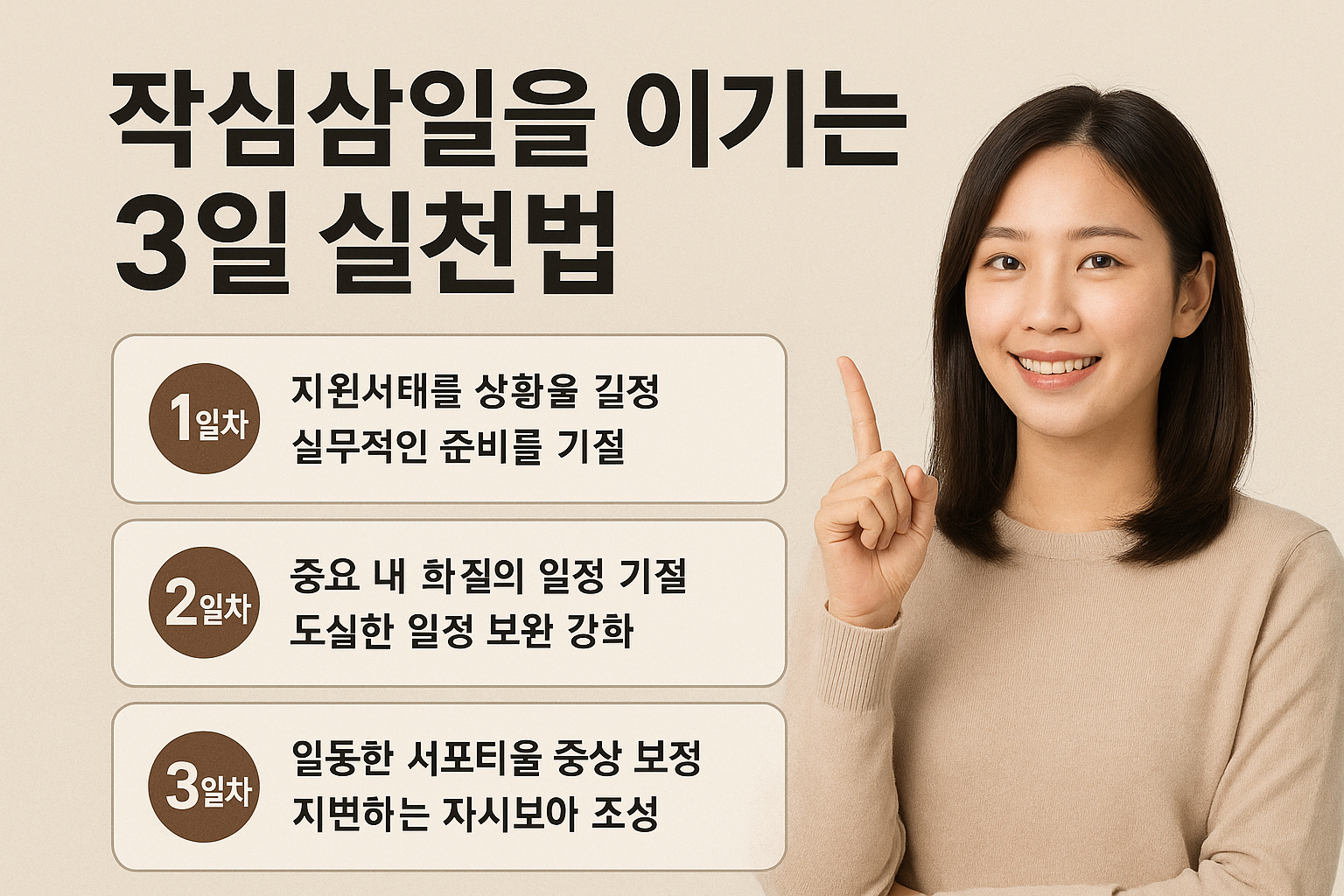 이번 글에서는 작심삼일을 활용해 오히려 성공을 이끌어내는 3일 실천법을 소개해드리겠습니다. 오늘부터 딱 3일, 함께 시작해보는 건 어떨까요?